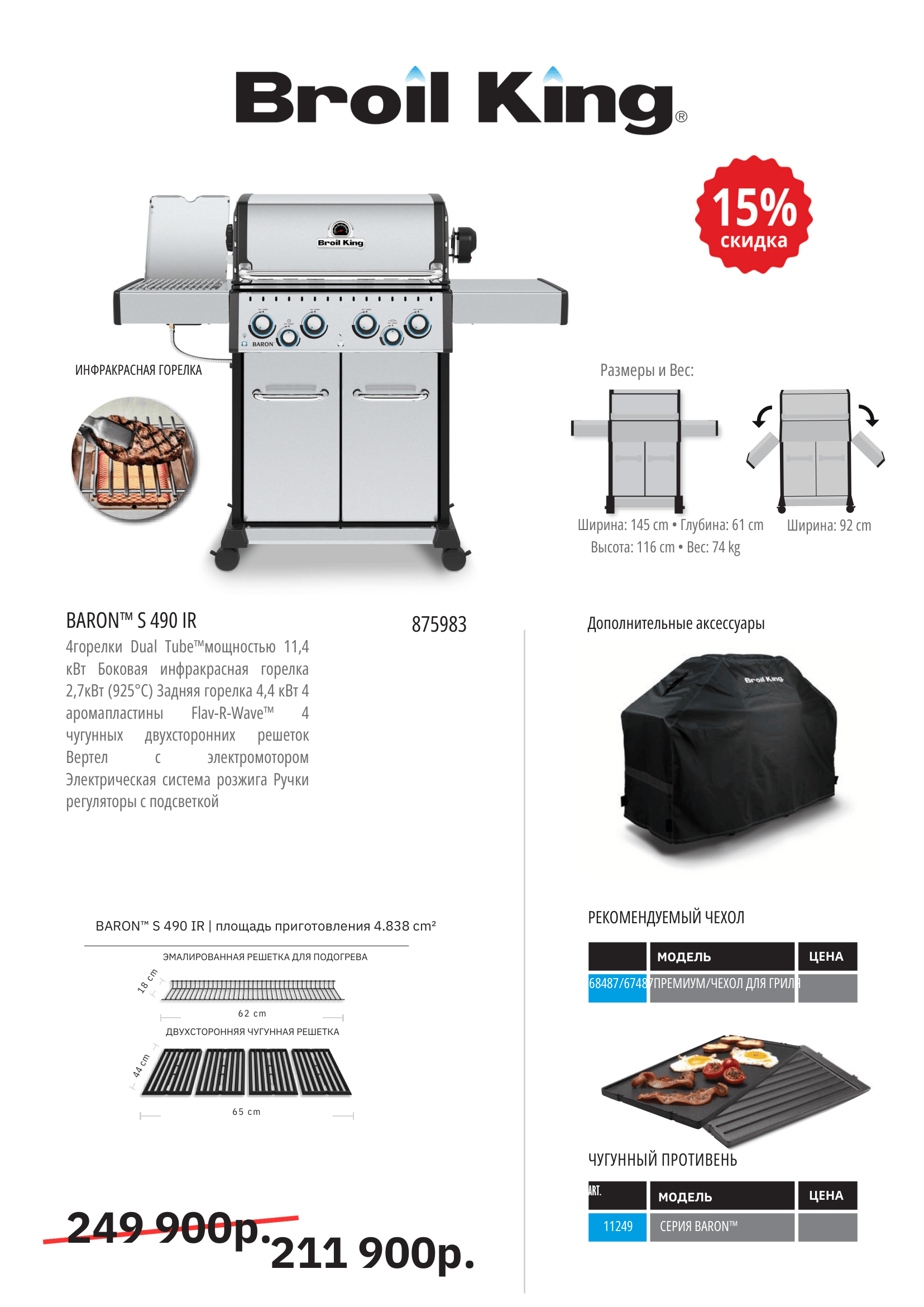 Газовый гриль Broil King® Baron™ S490IR это самый популярный и самый продаваемый гриль серии Baron.