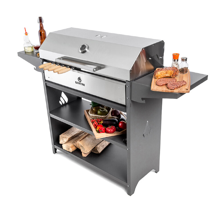 Вместительный гриль-мангал с крышкой барбекю из нержавеющей стали. Выдвижной зольник, термометр и заслонка позволяют точно регулировать интенсивность жара.